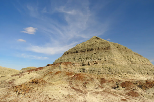 Spring is a great time to visit Dinosaur Provincial Park, even more so on a weekday during these crazy times in our world. I was here last September to camp for three nights when I saw this land like no other at its autumn best. Well, it is just as beautiful in the springtime with added touches of crocuses and only a dozen other people. After the two and a half hour drive from Calgary, I arrived to see an empty parking lot. Before setting off, I savoured a snack, changed into my hiking boots and donned an extra layer, head band and gloves. It was a fresh cool start in the desert.