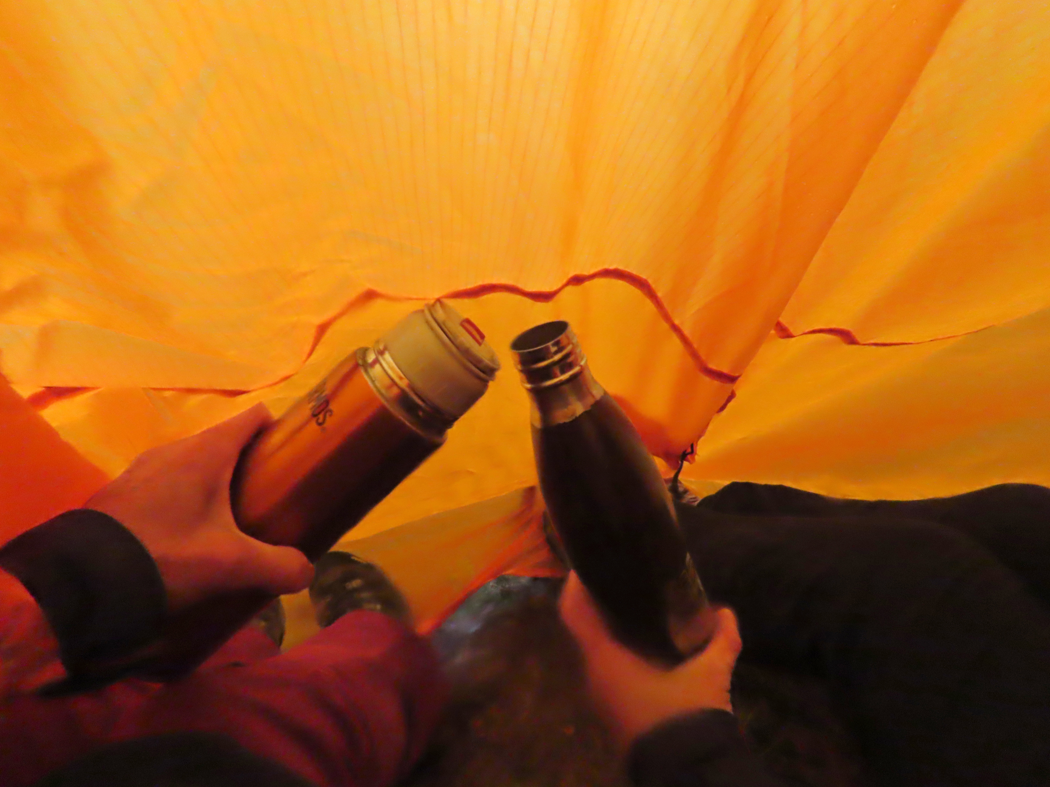 This is always in my backpack. It's a blanket that is windproof, waterproof and creates warmth wth wrapped in it. As I was getting it out of my back, Adventure Designer suggested we get into her bothy bag.