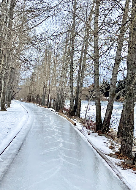 The Ice Trail at Bowness remains open! I ventured back there for my second skate of this season. Upon arrival, the Ice Man was completing his lap around the trail. That meant I had a fresh clean canvas to etch away on. I forgot how less work it is to skate on freshly flooded ice compared to what I skated on, on Monday.